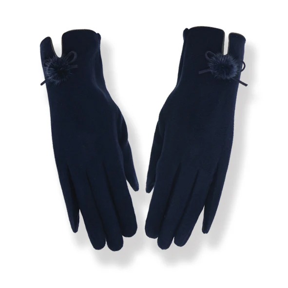 Couthie Ladies Plain Navy Gloves with Pom Pom