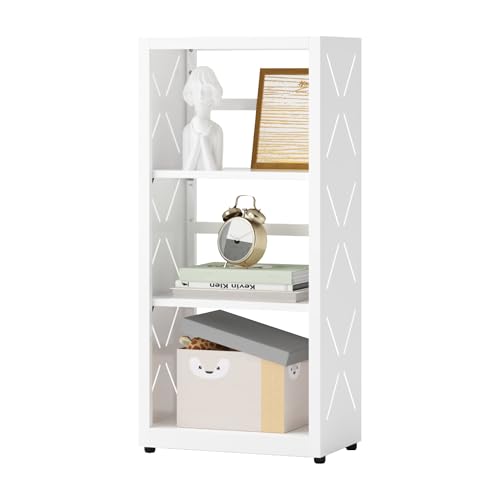 Narrow Bookshelf,3 Tier Bookcase,34" White Metal Small Bookshelf with Adjustable Feet and Adjustable Shelves,Home Office Bookcase Shelf Storage Organi