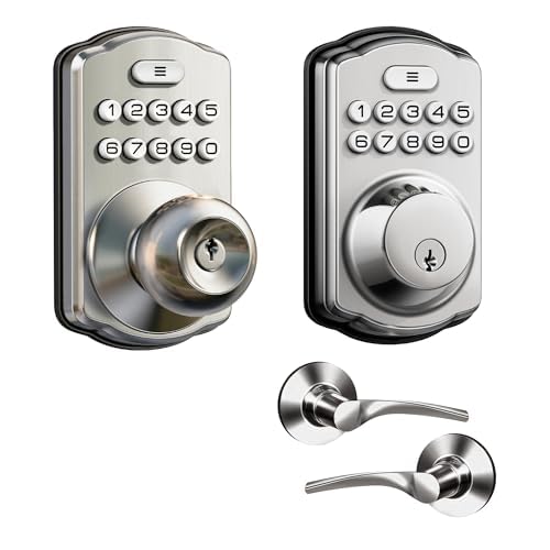 Veise Keypad Door Lock with 2 Lever Handles and Veise Keypad Door Knob Lock - Satin Nickel
