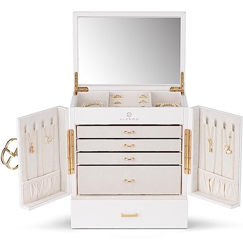 Vlando Schmuckkasten Groß, Vintage Schmuckkästchen 6 Ebenen, Schmuck Organizers Groß XXL mit Spiegel, Schubladen, Schmuckaufbewahrung Damen, Schmuc