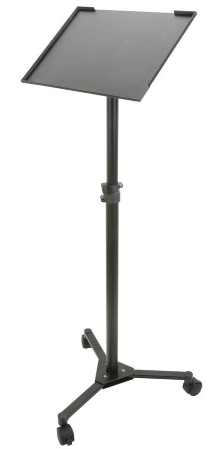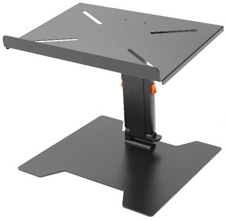 Strong Metal Laptop Stand. Suitable For Many Applications. Adjustable Height. Tilt FunctionTray Dimensions: 400 x 300mm Maximum Load: 15Kg Height: Adjustable 760-1305mm Weight: 3.25Kg. A robust laptop stand suitable for school presentations- DJ's and musicians. A 3 leg tripod helps stability; the height & tilt are adjustable. Quick & easy to assemble and fold down. Also suitable for mixers- light effects and much more.. laptop stand-Tripod laptop stand