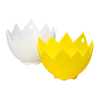 GOLD Winner at the 2009 Industry Awards Cookware & Bakeware category !!Silicone Egg Poacher for perfectly poached eggs ! The set of two Non-Stick Egg Poachers are made from FDA approved silicone and are dishwasher microwave and freezer safe. One yellow and one white. Fun practical and easy to use.Simply coat the inside of the egg poacher with cooking spray or olive oil.Stand the poacher in a small pan (which has a lid.)Crack one egg into the poacherAdd 1.5-2cm water to the pan and bring to the boil then reducing to a simmerPlace the lid on the pan and simmer for 4-6 minutes (depending on how hard you like the eggs to be.)Carefully remove from the pan and simply slide the egg out !For best results use the freshest egg possible. Also great for jellies ice creams and individual desserts.Details:Size; 5cm X 10cm dia Dishwasher safeMicrowave safeFreezer safe FDA approved siliconeSet of 2 - 1 White 1 YellowFrom Eddingtons
