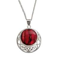 Cormag Celtic Silver Plated PendantHeathergems are uniquely Scottish and a beautiful reminder of our landscape. Due to the nature of the process no two Heathergems are the same making it a very individual personal gift.Product Details:Dimensions: 32.4mm Diameter Heathergem 16 x 16 mmChain: 18 Plated ChainGift Box & Story CardHandcrafted in ScotlandHeathergems is a unique and imaginative range of Scottish jewellery and giftware made in Pitlochry Scotland from natural heather stems. They are the only manufacturers of this unique Scottish product anywhere in the world.The heather is collected from the Perthshire hills. The stems are then dried shotblasted to remove the bark and dyed various colours to reflect the hues and shades of the heather moors and our stunning Scottish landscape. Stems of different colours and thickness are mixed and compressed into a block. Approximately 60 tons of pressure is required to press the stems together. The heather block is then cut into slices and individual pieces are cut sanded and shaped by skilled craft people before being lacquered to give the final finish.From Charles Buyers Ltd