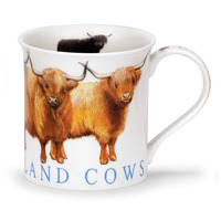 Dunoon fine bone china mugs are produced to the highest quality using traditional methods which have been developed and refined over 3 family generations in the pottery industry.The Bute shape holds 0.3l and is a traditional straight sided mug with a flare at the top. The comfortable handle makes it easy to hold.'Highland Cows' is a design by Richard Partis in fine detail featuring a herd of shaggy highland cows in a row around the mug with their iconic long upturned horns. Born in Bath Somerset Richard now lives in an old farmhouse in the Tamar Valley in Cornwall. An interest in natural history led Richard to draw in detail wildlife and nature subjects. Working with Dunoon for over 25 years his rural surroundings are his inspiration for his natural history designs and the technical subject of cars and aircraft are inspired by their beauty and history.Product Details:Capacity: 0.3LHeight: 87mmDiameter: 85mmFrom Dunoon Mugs
