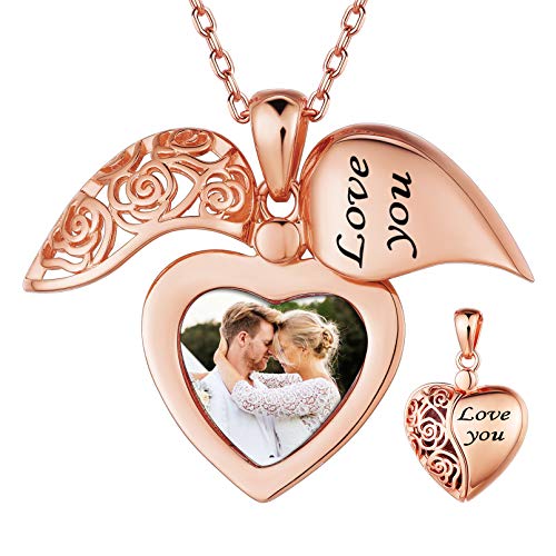 FaithHeart Cremation Urn Necklace, Women Men Stainless Steel/Gold Plated Memento Jewelry, Pet Ashes/Perfume/Pill Keepsake Waterproof Pendant Necklace for Memory- Customize Available Angel/31