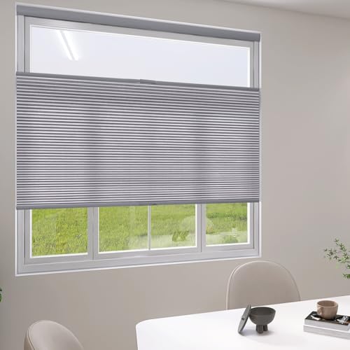 Zshine Manual Cordless Day Night Cellular Honeycomb Shades Light Filtering Fabric Window 26 mm Custom Made Size(93035C Grey)