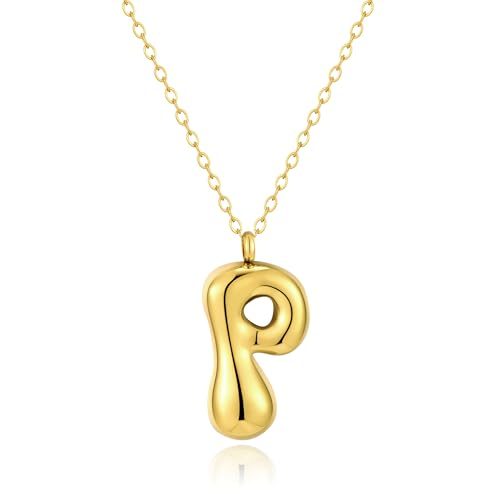 Kainier Bubble Letter Initial Necklace for Women, Colorful Balloon Alphabet Name Pendant Dainty Cute 14K Gold Plated Necklaces Jewelry Gifts…