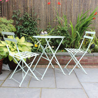 Since 1860, Charles Bentley have redefined the meaning of unrivalled craftsmanship and family values within the home and garden sector. Deliver a touch of French delight with our carefully selected group of bistro sets that will make those warm days outdoors that much more tranquil. Find your perfect bistro set, open that drink, and unwind after a long day.This 3 piece bistro set is ideal for small gardens, patios, balconies or conservatories. The table and chairs are foldable for easy, compact storage. The furniture has a powder coated finish and is rust and weather resistant. This set is contemporary and stylish and would brighten up any garden.Features:Matte FinishPowder Coated SteelFoldable Chairs & TableWeather ResistantIncludes:1 x Round Table2 x ChairsMaterials:SteelDimensions:Table height: 71cmTable diameter: 60cmChair width: 41cmChair depth: 45cmChair height: 80cmFolded table length: 60cmFolded table width: 4cmFolded table height: 93.5cmFolded chair length: 41cmFolded chair width: 8.5cmFolded chair height: 94.5cmWeights:Chair: 4.84kgTable: 4.9kgColours:Heritage GreenAdditional Info:Fully Assembled110kg Weight Limit Per ChairEasy To MaintainFull Instructions ProvidedCover Or Store Inside During The Winter Months