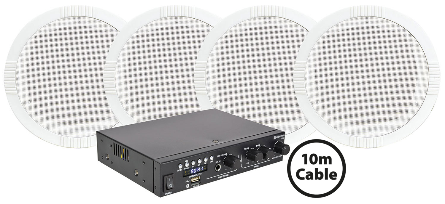 Installation Background Speaker System. 4 Subs. 8 Wall Mount Column Speakers. All Cables and Brackets IncludedPower: 2680W. A powerful background installation audio system for larger venues such as pubs- bars- restaurants- gyms- commercial outlets and more. This complete audio system includes 8 column array high frequency speakers- 2 passive subs- 2 active subs- 8 speaker brackets- 2 XLR cables and 10 speakon cables. All that is required is the connection of a suitable mixer or music player! The speakers are wall-mountable while the 4 subwoofers can be installed away from sight if desired. Two of the subwoofers are active and these power the two passive subwoofers- each then powering 4 line array columns. Wiring is straightforward; Connect the passive sub to the active with the short 4 core speakon cable provided- then daisy chain four of the line arrays to the passive sub with the supplied 2 core speaker cables. The installer can use the supplied iLINE box to connect the system to a computer- to externally set up the sub woofers DSP- with control over- equalisation- delay- gain- crossover point and compressor. This is particularly useful for improving the sound quality. The output of this system is immense- it not only sounds great for background music but you can also turn it up a bit & thanks to the included subs- you even get a good amount of bass compared to other background systems on the market. The speakers are available in black or white- so the system can be chosen to suit how the room is decorated.. column speaker-Installation PA-Background PA-Background Music System