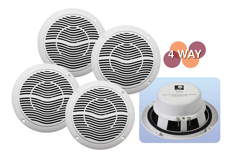 Resistant to Moisture. Ideal for Bathrooms and Kitchens. Works With Most Hifi and Multi-room Amplifiers. Built-in Tweeter for Clarity. 4 or 8 Ohm Versions. Sold in PairsB4024 Power RMS: 80W Impedance: 4 Ohms Frequency Response: 80-20000Hz Sensitivity: 90 (dBV/Pa) Cutout: 114mm Dimensions: 74 x 147 x 147mm Weight: 1.08kg B4028 Power RMS: 80W Impedance: 8 Ohms Frequency Response: 80-20000Hz Sensitivity: 90 (dBV/Pa) Cutout: 114mm Dimensions: 74 x 147 x 147mm Weight: 1.08Kg. A pair of high quality moisture resistant ceiling speakers with an internal tweeter providing an extended frequency response. Made from moulded ABS plastic and polypropylene cone with a cloth edge. The product is easy to fit and is ideal for both commercial and domestic applications including home cinema- surround sound and multi-room systems. Can be used in kitchens- bathrooms and is compatible with most low impedance amplifiers.. 5" water resistant ceiling speaker with internal tweeter for commercial or domestic applications- available in 4 or 8 Ohm versions. Compatible with most low impedence speakers. ceiling speaker-audio speaker
