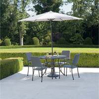 With its simple elegance, the Alexander Rose Portofino 4 Seater Metal Garden Furniture Set with Round Table & Woven Chairs combine quality and maintenance-free outdoor dining. The 1.05m mesh table is ideal for gatherings with family & friends and comes with stackable side chairs for convenient storage. The Alexander Rose Portofino line elevates the bar for contemporary outdoor furniture design and utility. With its fine powder coated mild steel and wire mesh , the Portofino represents the peak of modern city life. A prime illustration of how precisely this collection is manufactured is the exquisite way the mesh and structure blend together, merging lines, curves, and patterns in the design of the tables and chairs. The robust Portofino line fits in just as well in modern homes as it does in bustling metropolitan bistros. Its enduring minimalism and straightforward design are highly useful, easy to maintain, and seamlessly fit into a variety of settings. Set consists of: 4x Portofino Woven Armchairs 1x Portofino Round 1.05m Table Specifications Chair Dimensions: 54cm (W) x 88cm (H) x 67cm (D) Chair Weight (kg): 6 Table Dimensions: 105cm (W) x 74cm (H) x 105cm (D) Table Weight (kg): 10.5
