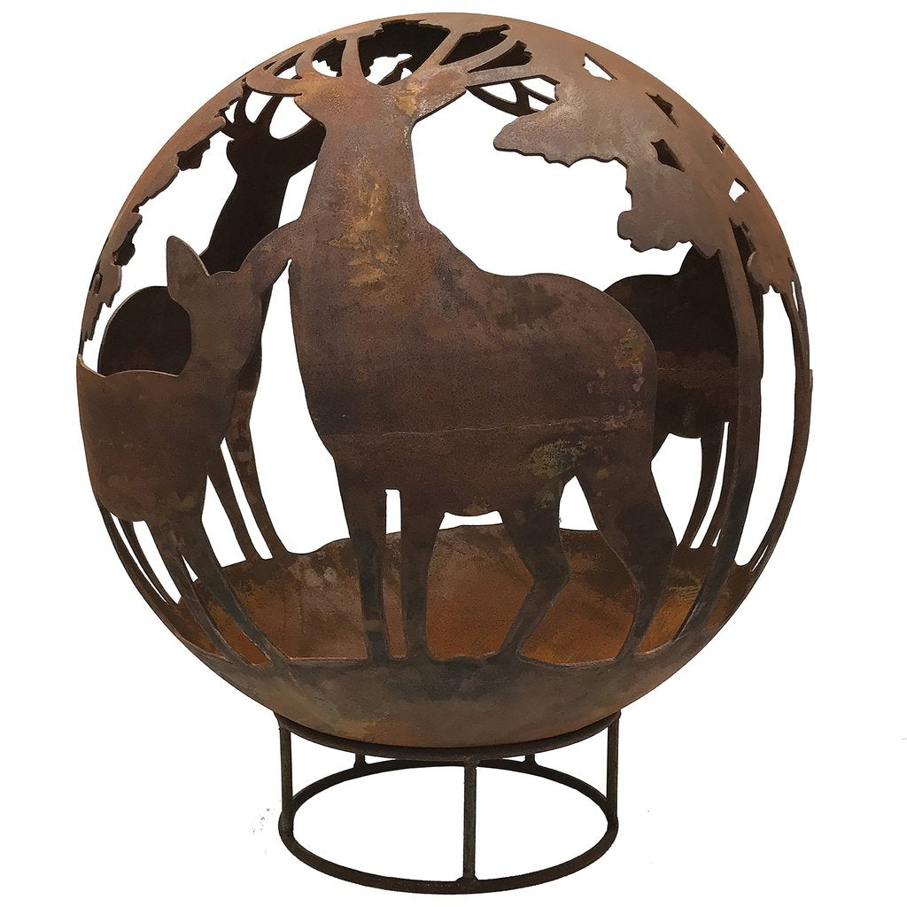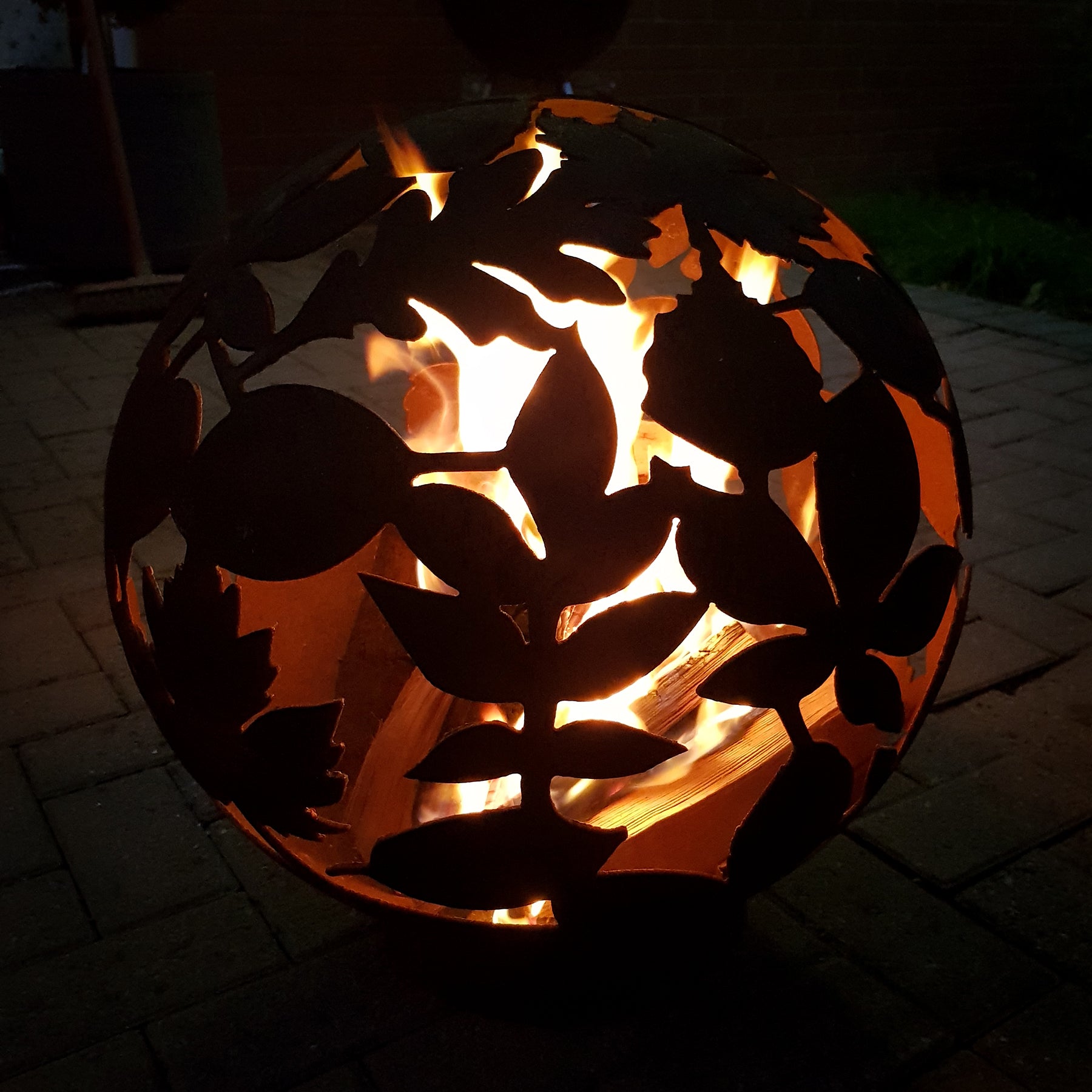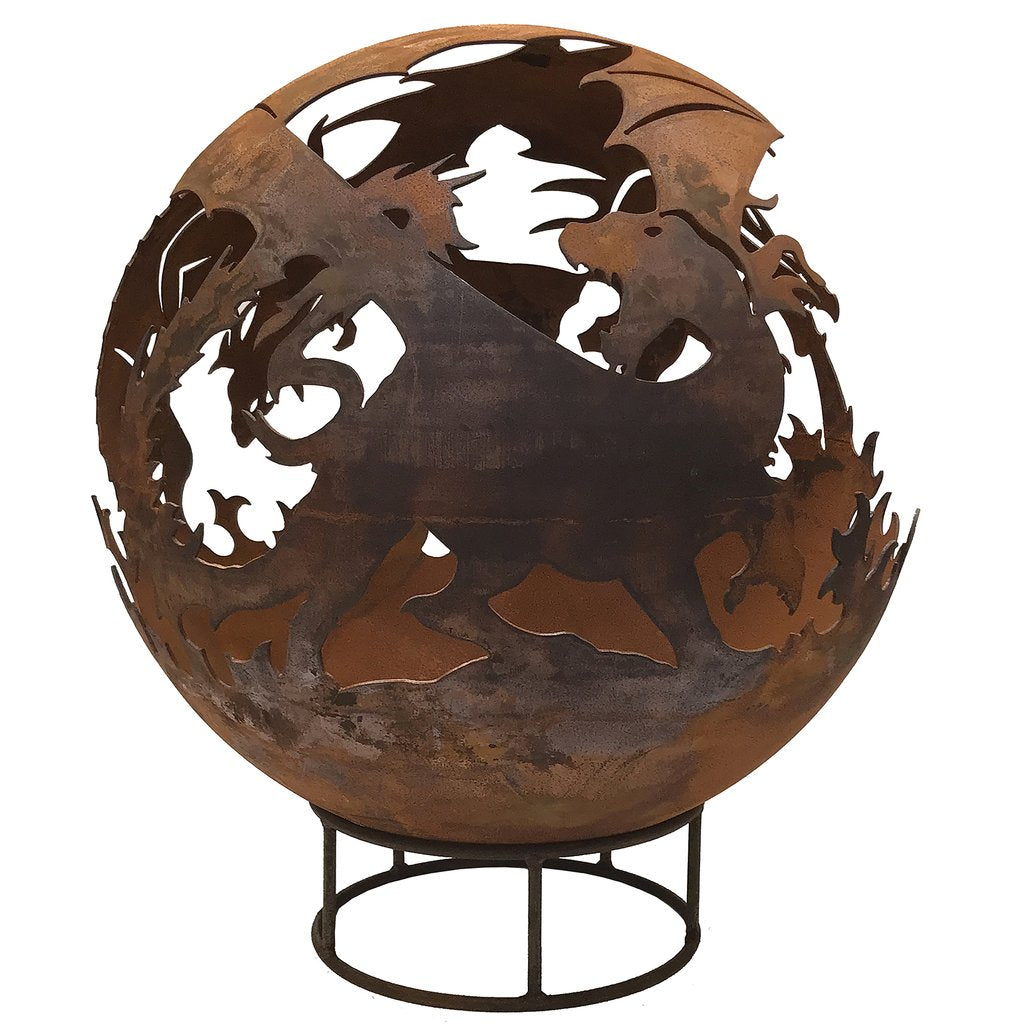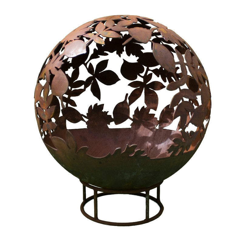 Enjoy summer for longer with our fantastic Garden Fire Balls. Handcrafted from 3mm mild steel, these 70 cm diameter Fire Balls are a great alternative to Fire Pits and will help extend the summer evenings. The unique design is a focal point when unlit and then casts unusual patterns at night when the fire is roaring! Available in 2 finishes, rust and black and comes complete with stand and poker. Leaf design Fire Ball 70cm Diameter 82cm tall inc. base Drain in bottom to release rain water Weight approx 25kg Please Note: Black colouring will need maintaining