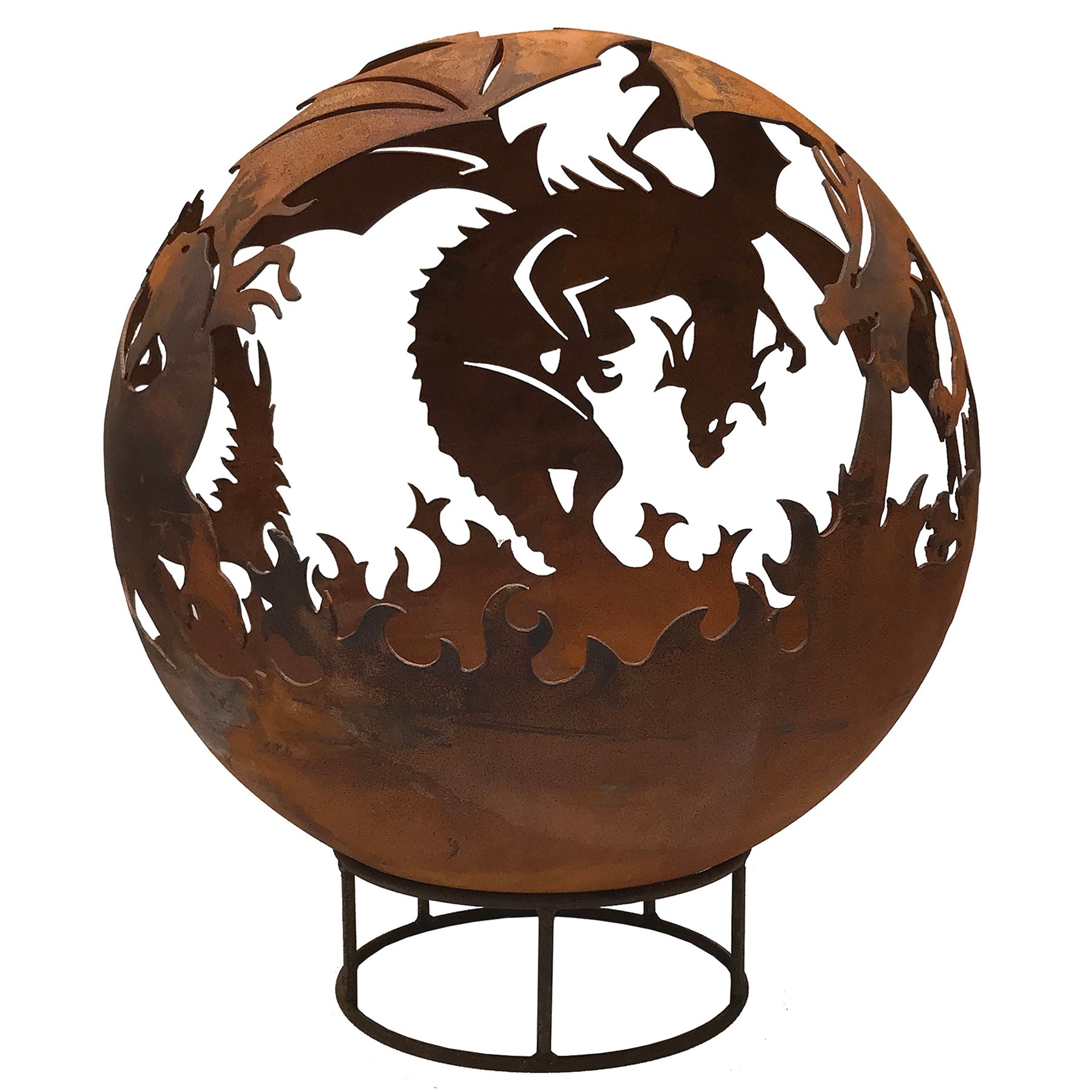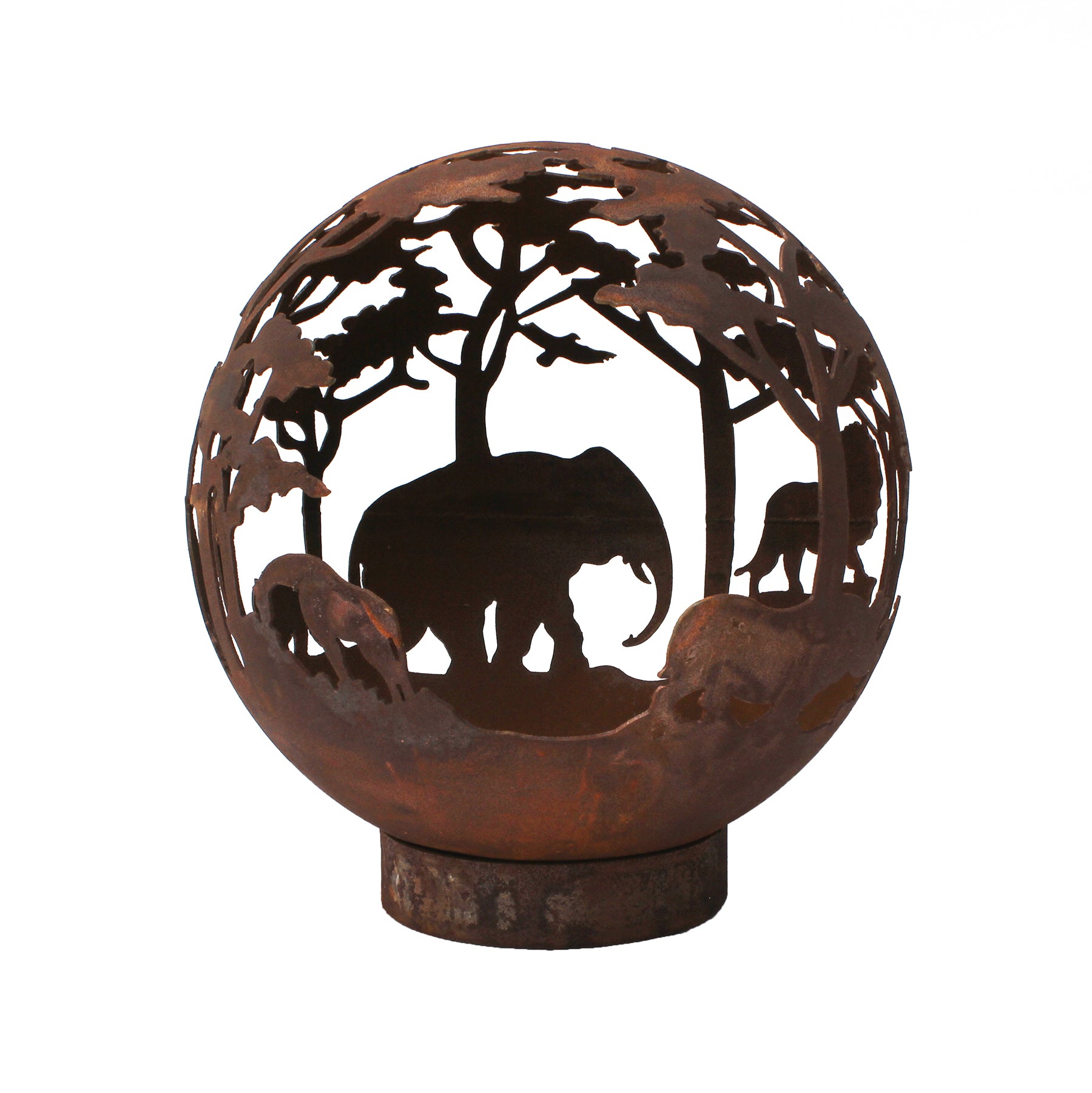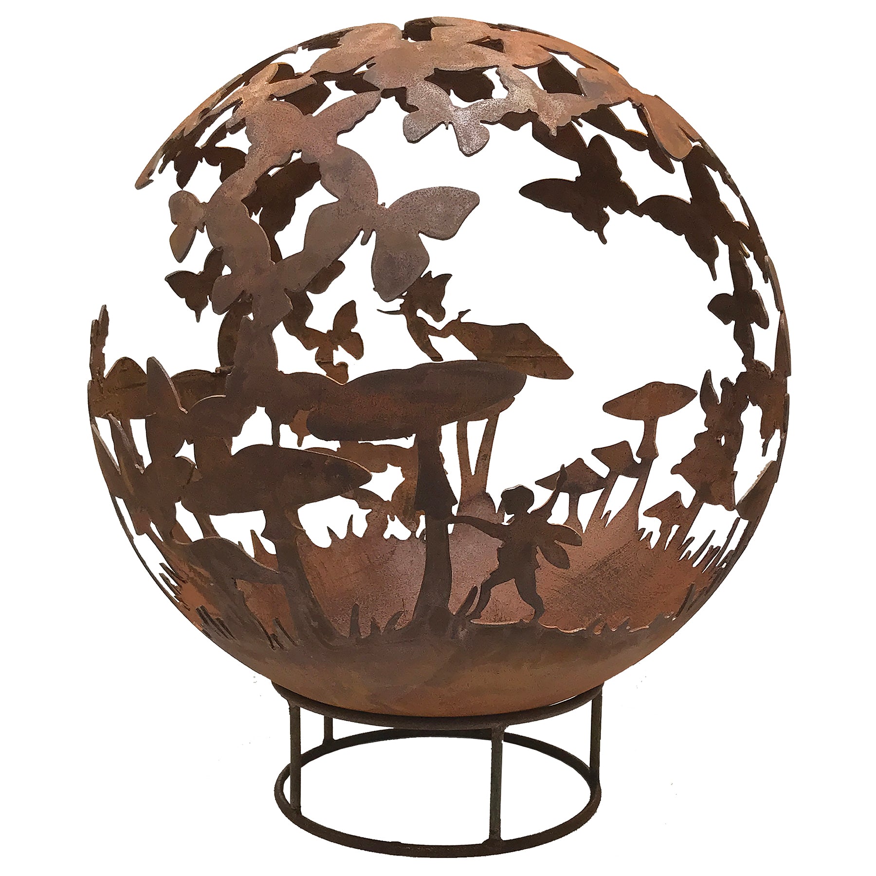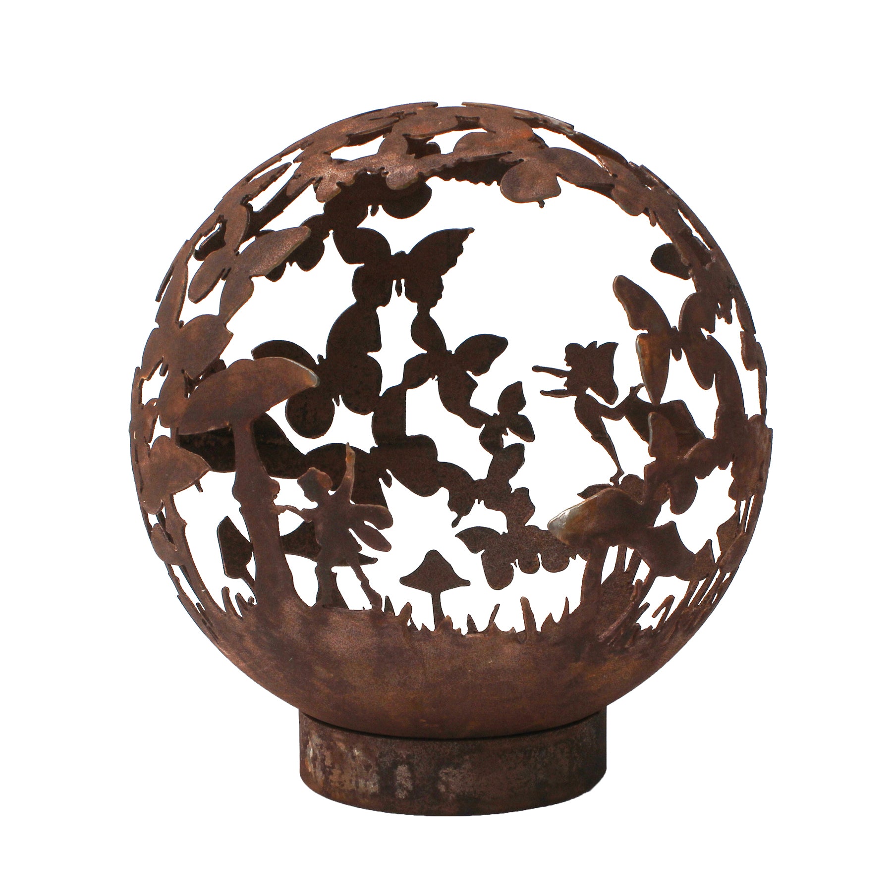 Enjoy summer for longer with our fantastic Garden Fire Balls. Handcrafted from 3mm mild steel, these 70 cm diameter Fire Balls are a great alternative to Fire Pits and will help extend the summer evenings. The unique design is a focal point when unlit and then casts unusual patterns at night when the fire is roaring! Available in 2 finishes, rust and black and comes complete with stand and poker. Leaf design Fire Ball 70cm Diameter 82cm tall inc. base Drain in bottom to release rain water Weight approx 25kg Please Note: Black colouring will need maintaining