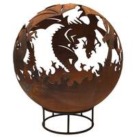 Enjoy summer for longer with our fantastic Garden Fire Balls. Handcrafted from 3mm mild steel, these 70 cm diameter Fire Balls are a great alternative to Fire Pits and will help extend the summer evenings. The unique design is a focal point when unlit and then casts unusual patterns at night when the fire is roaring! Dragon design Fire Ball 70cm Diameter 82cm tall inc.base Drain in bottom to release rain water Stand and Poker included Weight approx 25kg