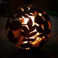Enjoy summer for longer with our fantastic Garden Fire Balls. Handcrafted from 3mm mild steel, these 50cm diameter Fire Balls are the perfect choice if space is limited. A great alternative to Fire Pits and will help extend the summer evenings. Unusual patterns are created at night when the fire is roaring and the unique design is a focal point when unlit. Comes complete with stand and poker. Leaf design Fire Ball 50cm Diameter 55cm tall inc.base Drain in bottom to release rain water Weight approx 20kg