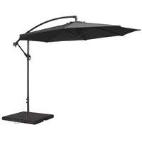 The Alexander Rose 3m Cantilever Round Garden Parasol - Charcoal provides convenience and elegance, and can be positioned to provide maximum shade from the sun. It is simple to use with an easy handle and lock mechanism, and it has 8 spokes for superior shape and strength, especially in strong winds. Free-standing in nature, this 3m parasol creates an enjoyable outdoor living space. Its off-centre aluminium frame allows you to position chairs directly under the canopy rather than to the side of it. With a 360-degree adjustment, you don't have to worry about moving seats when the sun becomes over baring; simply rotate to the desired position and let the parasol do the work! The Charcoal coloured canopy is made from extra durable and weatherproof 220 Denier fabric. Please Note: This parasol does not include a base. Dimensions Total Height: 2750mm Pole Height: 980mm Canopy Diameter: 3500mm