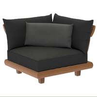 The Alexander Rose Sorrento Lounge Corner Modular Chair is an essential piece if you are going to create a sofa or an eye-catching, luxurious corner set using the Sorrento range. Alternatively, it can be used by itself or in conjunction with another to create a stylish and extremely comfortable sofa. This garden chair is made from sustainably sourced Teak and elegant deep seating cushions to add comfort and strength. The deep seating cushions are available in 2 different lovely earthy colours, Niebla and Grafito (see colour swatches in photos above), made from Agora fabric - a high-quality material. A scatter cushion is also included in contrasting colour. Exquisite modular outdoor furniture is available from the outstanding Alexander Rose Sorrento collection. The Sorrento is totally flexible for your outdoor living space thanks to its modular components as they can be rearranged whenever you like. The chairs and sofas in this collection blend warm teak tones with thick Kvadrat outdoor patio fabric seat & back cushions to produce a striking furniture set that is long-lasting, adaptable, and functional. All of the Teak used to make this collection is 100% FSC sustainably sourced. Specifications Dimensions: 90cm (H) x 110cm (W) x 110cm (D) Weight (kg): 55 . Alexander Rose Outdoor Sorrento Lounge Corner Modular Chair with Cushion, Grafito