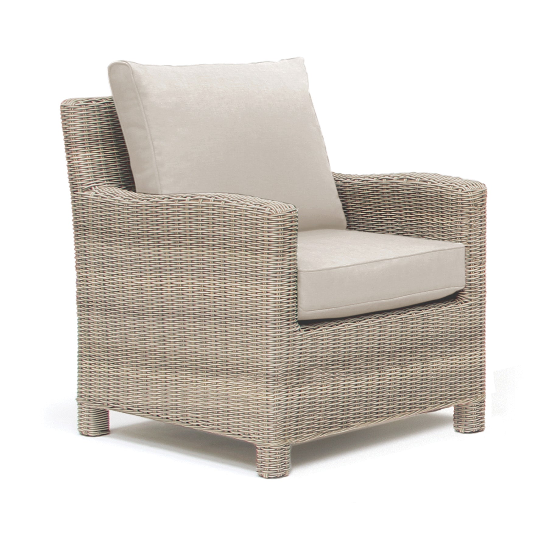 The Robert Charles Tennessee rattan armchair gives you the comfort you expect indoors and brings it outdoors! The neutral grey 7mm flat weave is complimented by a comfy 15cm cushions that are a blended grey material for a natural look. It is advised that cushions need to be stored indoors during the winter. The Tennessee range is a modular weave garden furniture collection that allows you to create your own bespoke rattan garden furniture set. Robert Charles Tennessee Rattan Armchair Neutral Grey 7mm flat weave Weatherproof aluminium frame Warranty 3 years
