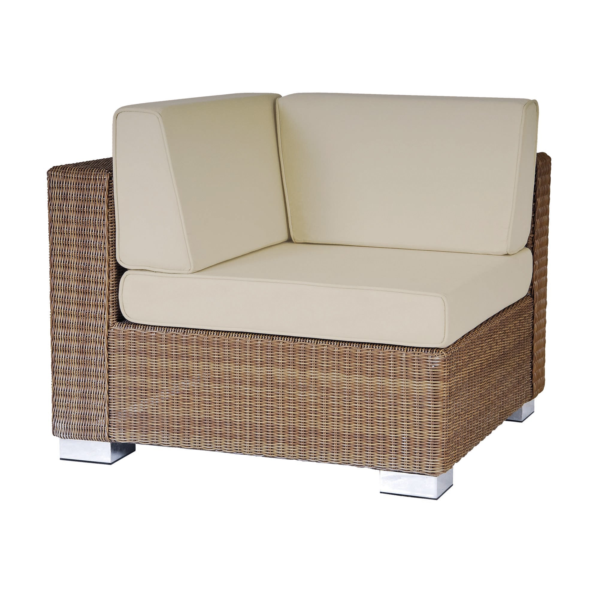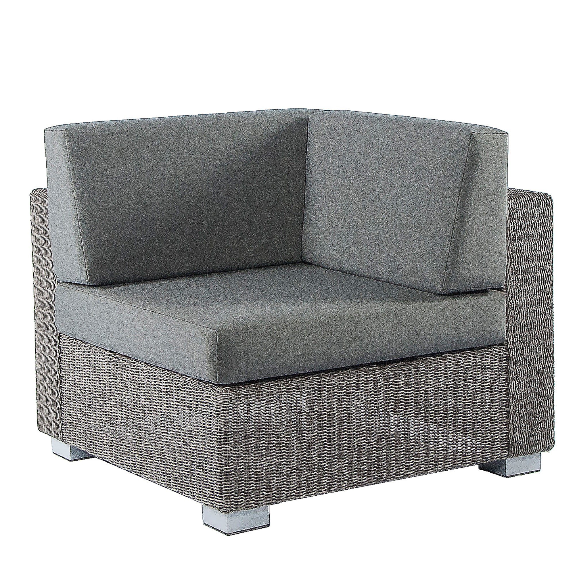 The Robert Charles Tennessee Rattan Modular Corner is the starting point of your perfect garden furniture design. The neutral grey 7mm flat weave is complimented by a comfy 15cm cushions that are a blended grey material for a natural look. It is advised that cushions need to be stored indoors during the winter. The Tennessee range is a modular weave garden furniture collection that allows you to create your own bespoke rattan garden furniture set. Robert Charles Tennessee Rattan Modular Corner Sofa Neutral Grey 7mm flat weave Weatherproof aluminium frame Warranty 3 years