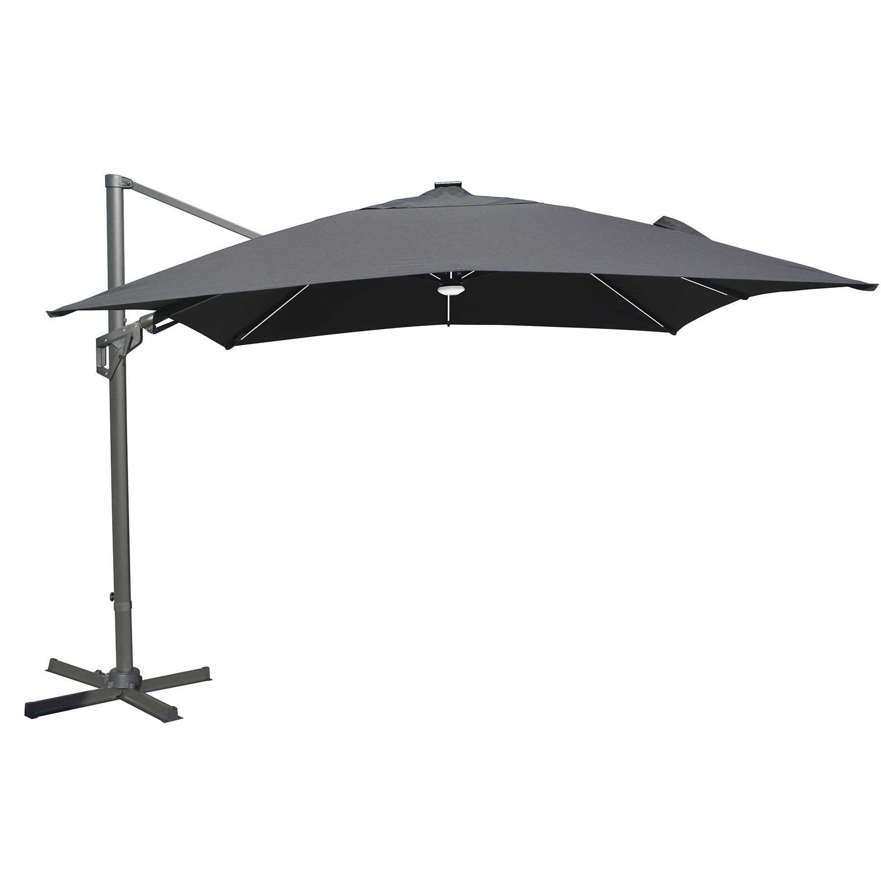 Kettler's cantilever, free-arm parasols not only complete the look of your garden furniture set, but are UV resistant to 50+, protecting you while you relax, entertain or dine on your patio. They come in a range of colours, sizes and styles. Why not push the boat out and get one featuring, not only LED lights, but bluetooth, wireless speakers too, adding ambience and music to your outdoor experience! Choose from wind-up "through the table" parasols, free arm cantilever parasols, wall mounted or half balcony parasols. Features: Slate Grey, high-quality, non-crease polyester canopy Aluminium frame with spring loaded spokes for a tighter canopy fit Easy canopy positioning with 360° rotation so no need to re-position the base Wind up mechanism open out the canopy Vertical and horizontal tilt with a simple handle Shower resistant canopy UV50+ sun protection Raised vent in the canopy helps prevent wind damage 4 piece sand and water fill parasol base included Includes a night cover Orbit Bluetooth speaker will fit this product as an optional extra 12 month warranty (terms and conditions apply) We recommend putting your parasol down when not in use or in windy weather.
