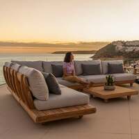The Alexander Rose Outdoor Sorrento Teak Lounge Set with Cushions and Coffee Table is incredibly adaptable as it allows you to create a corner sofa set or divide the seats into separate pieces to create garden sofas or individual seating. It has 100% FSC-certified Teak frames with rounded edges and a curved feature back rest , resulting in spacious and attractive outdoor seating. It includes deeply padded seating cushions in 2 different colours , Niebla and Grafito (see colour swatches in photos above), as well as contrasting scatter cushions . The stunning Alexander Rose Sorrento collection features outstanding modular outdoor furniture. The modular components of the Sorrento, which you can rearrange whenever you want, give you complete flexibility for your outdoor living space. This collection's chairs and sofas combine relaxing teak tones and with substantial seat and back cushions made of Agora outdoor patio fabric to create a visually appealing outdoor furniture set that is also durable, versatile, and practical. This collection is made entirely of sustainably sourced FSC-certified Teak. Set consists of: 4x Alexander Rose Sorrento Lounge Single Modular Chairs 1x Alexander Rose Sorrento Lounge Corner Modular Chair 1x Alexander Rose Sorrento Lounge Single Modular Chair with Extension 1x Alexander Rose Sorrento Ottoman 1x Alexander Rose Sorrento Teak Coffee Table (1m) 1x Alexander Rose Sorrento Table/Arm Attachment Specifications Single Modular Chair(s) Dimensions: 90cm (H) x 100cm (W) x 110cm (D) Single Modular Chair(s) Weight (kg): 42 Corner Modular Chair Dimensions: 90cm (H) x 110cm (W) x 110cm (D) Corner Modular Chair Weight (kg): 55 Single Modular Chair with Extension Dimensions: 90cm (H) x 130cm (W) x 110cm (D) Single Modular Chair with Extension Weight (kg): 46 Coffee Table Dimensions: 22cm (H) x 100cm (W) x 100cm (D) Coffee Table Weight (kg): 21 Ottoman Dimensions: 38cm (H) x 100cm (W) x 100cm (D) Ottoman Weight (kg): 28 Table/Arm Attachment Dimensions: 47.5cm (H) x 35cm (W) x 94.5cm (D) Table/Arm Attachment Weight (kg): 6 . Alexander Rose Outdoor Sorrento Teak Lounge Set with Cushions and Coffee Table, Grafito
