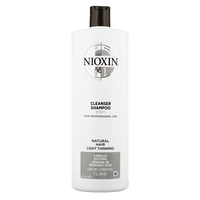 Nioxin System 1 Cleanser Shampoo - 1000ml\nNioxin System 1 Cleanser Shampoo is specially formulated for normal, thin looking, fine, natural non-chemically treated hair. This hair care product is designed to remove oil and debris such as sebum, fatty acids and environmental residue which can block hair follicles. System 1 helps in amplifying hair texture and protecting hair against breakage. This purifying shampoo for natural hair reduces hair loss due to breakage and strengthens the hair, while refreshing the scalp and delivering a healthy shine to natural hair with light thinning.\nGet Amplified Hair Texture\nThis thickening and strengthening shampoo is uniquely developed using advanced hair care system which provides thicker looking locks by reducing hair loss. The professional hair cleanser uses antioxidants, botanicals and vitamins to deeply cleanse for a rejuvenated feeling. This hair cleaning shampoo gently removes product build up, clearing nutrient pathways to your scalp and hair follicle sites without stripping hair of essential oils.\nGet Healthy Looking Thick Hair\nThis intense shampoo contains active renewal technology along with tea extract, peppermint oil and cleansing agents as main constituents. The tea extract prevents the production of DHT, a compound that promotes hair loss increasing blood's circulation to the scalp while stimulating hair growth by providing higher amounts of nutrients and oxygen. Other constituents like peppermint oil and cleansing agents provide refreshed scalp environment and healthy shine to natural hair. This hair treatment solution has a strong minty scent that cools the scalp.