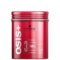 Schwarzkopf Professional Osis+ Thrill Fibre Gum is a bendable and mouldable styling gum perfect for all hair types.\nFormulated with an innovative Mega Elastic Fibre technology, Thrill Fibre Gum adds fun and creativity to your styling routine and delivers strong texture control with great shine. Perfect for creating attractive separation, texture and definition, this professional styling gum has a super strong hold which will allow your creativity to run wild!