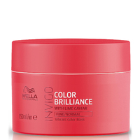 Wella Invigo Color Brilliance Fine Mask - 150ml \nWella Invigo Color Brilliance Fine Mask provides instant nourishment to your hair follicles and scalps while maintaining the texture and colour vibrancy. It enhances your coloured hair to look gorgeous, shiny and silky by eliminating any the unwanted brassy tones. Infused with lime caviar, this intensive hair care product cures the hair cuticles for high-shine finish to achieve fuller and bouncy hair. The Antioxidant Shield Technology improves hair density and provides necessary moisture and hydration to the hair scalps. \nIntense Moisturising Colour Hair Mask\nRepair and protect your coloured tresses from damage using this fine hair mask. This moisturising mask is the perfect hair care product that protects your strands from damage while adding a healthy sheen. The hair masque protects your tresses from the effects of pollutants, balances the moisture level in your scalp and brings a bouncy lift to your hair.\nNatural Ingredients That Protects Your Hair Colour \nThe Wella hair mask has lime caviar, which contains anti-oxidant that keeps your hair scalp hydrated by maintaining moisture and pH balance. The Antioxidant Shield Technology is rich in Vitamin E that protects colour fading and protects the hair from environmental damage. The copper encapsulating molecules give long lasting shine and bounce by maintaining the vibrant hair colour. A perfect blend of natural fragrances completes your beautiful and bold look.
