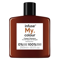 Infuse My. Colour Shampoo - Copper 250ml\nPreserve the hair colour you love and say hello to those warm undertones with a revitalizing Copper Shampoo/Cleanser. Infuse My. Colour Shampoo is innovatively formulated to provide gentle cleansing along with a counterbalance of colour pigments for vibrant and lively tint effects. This Copper Shampoo subdues the warm tones, helping you maintain the brightness of deep strawberry blonde, copper, Auburn and warm brown hair. Choose this at-home colour therapy to prevent fading and retain moisture for luscious locks you would love to own!\nSay Hello to Copper Tones\nInfused with salon-grade ingredients, the colour preserving shampoo works to refresh, revive and tone coloured hair. Copper Clarifying Shampoo, when applied to bleach blonde, it hair creates a peachy effect while on super white blondes it gives a gorgeous warm effect. Along with maximum colour protection, the hair care shampoo effectively cleanses dirt and grime from your scalp for a fresh and clean appearance. The conditioning shampoo does not cause dryness instead infuses the needed moisture for healthy-looking tresses.\nProfessional Cleansing Formula for Salon-Standard Effect\nSkip the inflated salon bills as you get professional colour care at home with this revitalizing Copper Shampoo! This paraben-free shampoo does not contain harmful sulphates and silicones, thus a suitable choice for normal to sensitive scalps. The vegan cleanser provides intense UV protection, while its conditioning agents and extracts hydrate and add shine. Stabilizing the colouring agents in the hair shaft, this clarifying shampoo helps maintaining the colour vibrancy and texture for a celeb-inspired look.