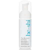 He-Shi Tan Remover and Primer - 150ml\nWant an easy way to remove tan? This is the perfect solution! \nInfused with the beautifully scented White Nectarine & Pear, this removes tan with no need to scrub harshly, being the most simple and gentle way to remove tan!\nNot only does it remove tan in just 5 minutes, it also preps and primes the skin for your next application - Perfect for those tanning Thursday's when you need a blank canvas!\nFind out more:\n\n