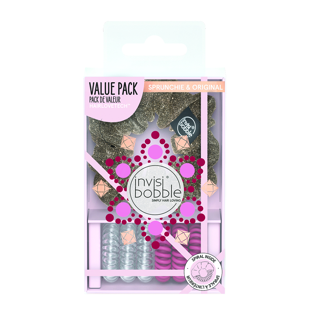 British Royal Collection\nA winter holiday collection for your inner princess with rich velvet materials, pearls and 'royal bloody‘ rhinestones. \nThe secret of invisibobble® lies in its spiral shape. Because the invisibobble® distributes pressure evenly on your ponytail, you get a strong and comfortable fit. The invisibobble® ORIGINAL leaves no traces in your hair and is waterproof.\nInspired by its fans from all over the word, invisibobble® celebrates their diversity and sense of style. Thus the evergreen invisibobble® ORIGINAL gets a limited edition design. The ORIGINAL comes in a soft, noble shade of red and is reminiscent of the reflective Christmas season.\nContent: 1 Pkg. includes 3 invisibobbles®