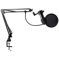 High Quality Studio Condenser Microphone. Articulated Arm Mount with Worktop Clamp. Spider Shock Mount Holder. Phantom Power +48V Required. 2.5m XLR-XLR Lead SuppliedType: Condenser Polar Pattern: Cardioid Frequency Response: 20Hz-20kHz Sensitivity: -38dB ñ 2dB Lead Length: 2.5m Dimensions: 157 x 46mm (Microphone Only) Weight: 228g (Microphone Only). Studio microphone kit comprising a condenser microphone with shock mount- pop filter- pop shield- XLR lead and adjustable arm mount with clamp. Designed for use with mixing consoles or audio interfaces that have phantom power at the input. Delivers crisp and clear vocals and instrument recordings for project studios- online broadcasts and DAW based applications.. studio microphone-condenser microphone