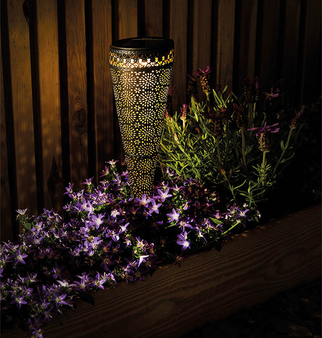 Solar Garden Spike Light. Oriental Design. Available in Blue or Pink. Outdoor UseBatteries: 1 x AAA (Not Supplied) Dimensions: 830mm x 155mm x 155mm Weight: 350g (Per Light). A beautiful oriental style solar light. This solar light will bring any flower bed- border or pot to life at night- it also looks fabulous by day- adding a shot of colour particularly in the winter months. This attractive IP44 rated energy saving LED solar light uses the attached solar panel to recharge the AAA battery throughout daylight hours using free energy from the sun- once charged it will provide up to 6 hours of light. When dusk falls- the light will automatically turn on and turns off again at dawn. The light is100% solar meaning no unsightly wires are needed to make it work. They make the perfect gift or simply treat yourself! Available individually or in a pack of 4 in pink or blue.. led garden light-led solar light-garden spike light