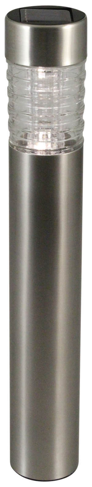 Solar Post Light. Easy to Connect. Perfect for use in Remote Areas. Outdoor UseBatteries: 1 x AA (Supplied) Dimensions: 377 x 62 x 62mm Weight: 880g (Per Light). Decorate your outdoor living space even in remote areas by placing these stylish lights in a sunny spot- they will enhance the look and feel of any garden. These solar lights are made from durable Stainless Steel and can also be used to provide ambient light sufficient to illuminate paths- borders and driveways etc. The lights have an integral solar panel. These attractive IP33 rated energy saving LED solar post lights use the integral solar panel to recharge the AA battery throughout daylight hours using free energy from the sun- once charged it will provide up to 6 hours of light. When dusk falls- the light will automatically turn on and turns off again at dawn. Getting power to an outside area can be costly and often difficult- this outdoor solar light has been specifically designed to avoid these problems- not only that but the light is also extremely easy to install just use the supplied spike and push into the ground!. This light is part of Luxforms All Year Round range- meaning it is equipped with a self-thinking system- stored energy is distributed evenly over the number of burning hours. The light detects and calculates the battery capacity and always distributes this energy capacity evenly over 6 hours. This means that when the battery has less charge the light will shine less brightly. The big advantage with lights in this series is that you are guaranteed 6 hours of light every night- 365 days a year!. led garden light-led solar light-led post light
