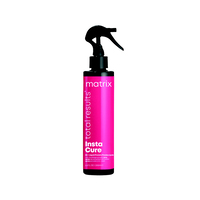 Matrix Total Results Instacure Treatment Spray nourishes and strengthens hair and reduces breakage in dehydrated, fragile, and damaged hair. The formula smooths cuticle damage, controls static and frizz, conditions over-porous hair, protects hair from heat styling, and works on vulnerable hair to balance pH.