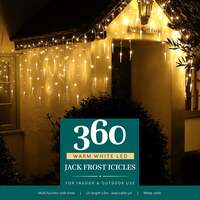 These Warm White LED Icicle Lights come in three sizes and are suitable for indoor or outdoor use. With Natural Snowing effects, twinkling or static and Memory Easytimer included. The easytimer allows you to set your lights to come on for the same 8 hours each day, simply press the button when you want them to come on and they will stay on for 8 hours. They will come on at the same time every day until you reset them! If you would prefer the timer can be turned off completely. Long life LED's with over 20,000 hours Warm White LED's Snowing or static functions Energy saving long life bulbs Easytimer Plug to 1st Bulb - 5m 120 lights - 2.5m 360 lights -7.6m - 74 Icicles 720 lights -15.4m - 144 Icicles Indoor or outdoor Gutter Hooks Included . Noma Christmas Warm White Multifunction Jack Frost Icicles With Clear Cable 120, 360, 720, 360 Bulbs