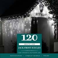 These Bright White LED Icicle Lights come in two sizes and are suitable for indoor or outdoor use. With Natural Snowing effects, twinkling or static and Memory Easytimer included. The easytimer allows you to set your lights to come on for the same 8 hours each day, simply press the button when you want them to come on and they will stay on for 8 hours. They will come on at the same time every day until you reset them! If you would prefer the timer can be turned off completely. Long life LED's with over 20,000 hours Bright White LED's Snowing or static functions Energy saving long life bulbs Easytimer Plug to 1st Bulb - 5m 120 lights - 2.5m 360 lights -7.6m - 74 Icicles 720 lights -15.4m - 144 Icicles Indoor or outdoor Gutter Hooks Included . Noma Christmas White Multifunction Jack Frost Icicles With Clear Cable 120, 360, 720, 120 Bulbs