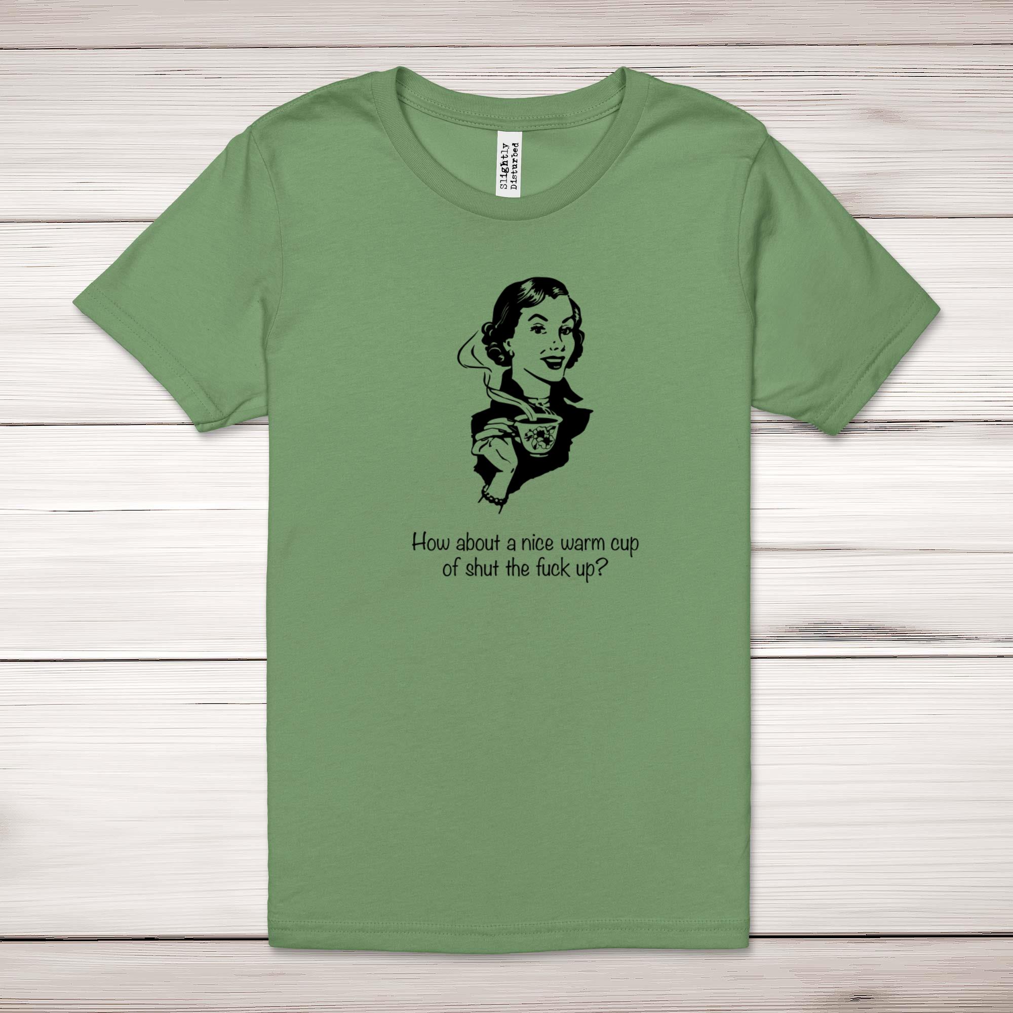 Queen Cunt Adult T-Shirt\nA rude adult t-shirt with "Queen Cunt" printed across the front of a 100% cotton* t-shirt. This rude t-shirt is great as a gift for any occasion.\nAll of our adult t-shirts are designed and hand-printed in the UK and are manufactured from quality 100% pre-shrunk jersey cotton knit for substantial softness and comfort. When quality, durability and substance count, this is the tee everyone can agree on. Featuring a crew neck, short sleeves, twin needle sleeve and bottom hems and unisex sizing. Available in sizes Extra Small to 5XL*.\n *Black & White tees available in sizes XS - 5XL, all other colours available XS - 2XL \n\nSize Guide\nUnisex adult t-shirts are measured across the chest, in inches\n\n\nXS 30/32"\n\nS 34/36"\n\nM 38/40"\n\nL 42/44"\n\nXL 46/48"\n\n2XL 50/52"\n\n3XL 54/56"\n4XL 58/60"5XL 62/64"\n\nSee more on our clothing size guide (opens in new tab)\n\n\nPlease Note\nAll of our t-shirts are hand-printed to order, as a result, colours may vary between prints - images are for illustration purposes only.\n\n