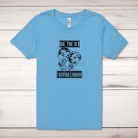 Dad, You're A Fucking Legend Adult T-Shirt\nA rude unisex adult t-shirt with "Dad, You're A Fucking Legend" printed across the front of a 100% cotton* t-shirt. This rude t-shirt is great as a gift for any occasion.\nAll of our adult t-shirts are designed and hand-printed in the UK and are manufactured from quality 100% pre-shrunk jersey cotton knit for substantial softness and comfort. When quality, durability and substance count, this is the tee everyone can agree on. Featuring a crew neck, short sleeves, twin needle sleeve and bottom hems and unisex sizing. Available in sizes Extra Small to 5XL*. *Black & White tees available in sizes XS - 5XL, all other colours available XS - 2XL \n\nSize Guide\nUnisex adult t-shirts are measured across the chest, in inches\n\n \nXS 30/32"\n\nS 34/36"\n\nM 38/40"\n\nL 42/44"\n\nXL 46/48"\n\n2XL 50/52"\n\n3XL 54/56"\n4XL 58/60"5XL 62/64"\n\n\nSee more on our clothing size guide (opens in new tab)\n\n\nPlease Note\nAll of our adult t-shirts are hand-printed to order, as a result, colours may vary between prints - images are for illustration purposes only.\n