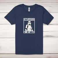 Employee Of The Month Adult T-Shirt\nA geeky adult t-shirt with "Employee Of The Month" printed across the front of a 100% cotton* t-shirt. This geeky t-shirt is great as a gift for any occasion.\nAll of our adult t-shirts are designed and hand-printed in the UK and are manufactured from quality 100% pre-shrunk jersey cotton knit for substantial softness and comfort. When quality, durability and substance count, this is the tee everyone can agree on. Featuring a crew neck, short sleeves, twin needle sleeve and bottom hems and unisex sizing. Available in sizes Extra Small to 5XL*.\n\n*Black & White tees available in sizes XS - 5XL, all other colours available XS - 2XL\n\nSize Guide\nUnisex adult t-shirts are measured around the chest, in inches\n\nXS 32/34"\nS 34/36"\nM 38/40"\nL 42/44"\nXL 46/48"\n2XL 50/52"\n3XL 54/56"\n4XL 58/60"5XL 62/64"\n\nSee more on our clothing size guide (opens in new tab)\n\n\nPlease Note\nAll of our t-shirts are hand-printed to order, as a result, colours may vary between prints - images are for illustration purposes only.\n\n