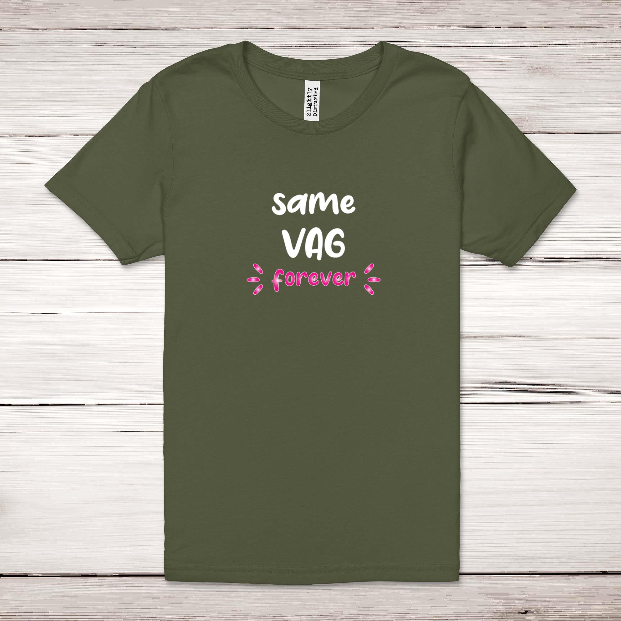 Lesbians Eat What Adult T-Shirt\nA rude adult t-shirt with "Lesbians Eat What?!" printed across the front of a 100% cotton* t-shirt. This rude t-shirt is great as a gift for any occasion.\nAll of our adult t-shirts are designed and hand-printed in the UK and are manufactured from quality 100% pre-shrunk jersey cotton knit for substantial softness and comfort. When quality, durability and substance count, this is the tee everyone can agree on. Featuring a crew neck, short sleeves, twin needle sleeve and bottom hems and unisex sizing. Available in sizes Extra Small to 5XL*.\n *Black & White tees available in sizes XS - 5XL, all other colours available XS - 2XL \n\nSize Guide\nUnisex adult t-shirts are measured across the chest, in inches\n\nXS 30/32"\nS 34/36"\nM 38/40"\nL 42/44"\nXL 46/48"\n2XL 50/52"\n3XL 54/56"\n4XL 58/60"\n5XL 62/64"\n\nSee more on our clothing size guide (opens in new tab)\n\n\nPlease Note\nAll of our t-shirts are hand-printed to order, as a result, colours may vary between prints - images are for illustration purposes only.\n\n