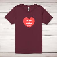 Bend Over Forwards Adult T-Shirt\nA rude unisex adult t-shirt with "I'd Bend Over Forwards For You" printed across the front of a 100% cotton* t-shirt. This rude t-shirt is great as a gift for any occasion.\nAll of our adult t-shirts are designed and hand-printed in the UK and are manufactured from quality 100% pre-shrunk jersey cotton knit for substantial softness and comfort. When quality, durability and substance count, this is the tee everyone can agree on. Featuring a crew neck, short sleeves, twin needle sleeve and bottom hems and unisex sizing. Available in sizes Extra Small to 5XL*.\n\n*Black & White tees available in sizes XS - 5XL, all other colours available XS - 2XL\n\nSize Guide\nUnisex adult t-shirts are measured around the chest, in inches\n\nXS 32/34"\nS 34/36"\nM 38/40"\nL 42/44"\nXL 46/48"\n2XL 50/52"\n3XL 54/56"\n4XL 58/60"5XL 62/64"\n\nSee more on our clothing size guide (opens in new tab)\n\n\nPlease Note\nAll of our adult t-shirts are hand-printed to order, as a result, colours may vary between prints - images are for illustration purposes only.\n