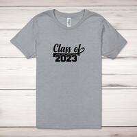 Class Of 2023 Adult T-Shirt\nA novelty adult t-shirt with "Class Of 2023" printed across the front of a 100% cotton* t-shirt. This novelty t-shirt is great as a gift for any occasion.\nAll of our adult t-shirts are designed and hand-printed in the UK and are manufactured from quality 100% pre-shrunk jersey cotton knit for substantial softness and comfort. When quality, durability and substance count, this is the tee everyone can agree on. Featuring a crew neck, short sleeves, twin needle sleeve and bottom hems and unisex sizing. Available in sizes Extra Small to 5XL*.\n\n*Black & White tees available in sizes XS - 5XL, all other colours available XS - 2XL\n\nSize Guide\nUnisex adult t-shirts are measured around the chest, in inches\n\nXS 32/34"\nS 34/36"\nM 38/40"\nL 42/44"\nXL 46/48"\n2XL 50/52"\n3XL 54/56"\n4XL 58/60"\n5XL 62/64"\n\nSee more on our clothing size guide (opens in new tab)\n\n\nPlease Note\nAll of our t-shirts are hand-printed to order, as a result, colours may vary between prints - images are for illustration purposes only.\n\n