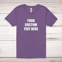 Personalised Text Adult T-Shirt\nCreate your own unique, personalised t-shirt; choose your colour, select a font and font colour and add your own\n\n personal message to be printed across the front of the garment. personalised t-shirts make a great gift\n\n perfect for every occasion.\nPLEASE NOTE:\n\nPlease double check your personalisation as how it appears in your confirmation email will be how it\n\n appears on the product, including spacing and punctuation.\n\n If we experience any problems with your design we will be in touch, please respond to\n\n messages as soon as possible so that we can provide a speedy delivery without too much delay.\n \n\nAll of our adult t-shirts are designed and hand-printed in the UK and are manufactured from quality 100% pre-shrunk jersey cotton knit for substantial softness and comfort. When quality, durability and substance count, this is the tee everyone can agree on. Featuring a crew neck, short sleeves, twin needle sleeve and bottom hems and unisex sizing. Available in sizes Extra Small to 5XL*.\n *Black & White tees available in sizes XS - 5XL, all other colours available XS - 2XL \n\nSize Guide\nUnisex adult t-shirts are measured across the chest, in inches\n\n\nXS 30/32"\n\nS 34/36"\n\nM 38/40"\n\nL 42/44"\n\nXL 46/48"\n\n2XL 50/52"\n\n3XL 54/56"\n4XL 58/60"5XL 62/64"\n\nSee more on our clothing size guide (opens in new tab)\n\n\nPlease Note\nAll of our t-shirts are hand-printed to order, as a result, colours may vary between prints - images are for illustration purposes only.\n\n
