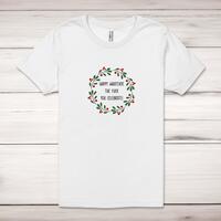 Happy Whatever The Fuck Adult T-Shirt\nA rude unisex adult t-shirt with "Happy Whatever The Fuck You Celebrate!" printed across the front of a 100% cotton* t-shirt. This rude t-shirt is great as a gift for any occasion.\nAll of our adult t-shirts are designed and hand-printed in the UK and are manufactured from quality 100% pre-shrunk jersey cotton knit for substantial softness and comfort. When quality, durability and substance count, this is the tee everyone can agree on. Featuring a crew neck, short sleeves, twin needle sleeve and bottom hems and unisex sizing. Available in sizes Extra Small to 5XL*. *Black & White tees available in sizes XS - 5XL, all other colours available XS - 2XL \n\nSize Guide\nUnisex adult t-shirts are measured across the chest, in inches\n\nXS 30/32"\n S 34/36"\nM 38/40"\nL 42/44"\nXL 46/48"\n2XL 50/52"\n3XL 54/56"\n4XL 58/60"5XL 62/64"\n\n\nSee more on our clothing size guide (opens in new tab)\n\n\nPlease Note\nAll of our adult t-shirts are hand-printed to order, as a result, colours may vary between prints - images are for illustration purposes only.\n