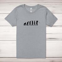 Evolution Of A Golfer Adult T-Shirt\nA novelty adult t-shirt with a progressive evolution graphic finishing with a golfer printed across the front of a 100% cotton* t-shirt. This novelty t-shirt is great as a gift for any occasion.\nAll of our adult t-shirts are designed and hand-printed in the UK and are manufactured from quality 100% pre-shrunk jersey cotton knit for substantial softness and comfort. When quality, durability and substance count, this is the tee everyone can agree on. Featuring a crew neck, short sleeves, twin needle sleeve and bottom hems and unisex sizing. Available in sizes Extra Small to 5XL*.\n\n*Black & White tees available in sizes XS - 5XL, all other colours available XS - 2XL\n\nSize Guide\nUnisex adult t-shirts are measured around the chest, in inches\n\nXS 32/34"\nS 34/36"\nM 38/40"\nL 42/44"\nXL 46/48"\n2XL 50/52"\n3XL 54/56"\n4XL 58/60"5XL 62/64"\n\nSee more on our clothing size guide (opens in new tab)\n\n\nPlease Note\nAll of our t-shirts are hand-printed to order, as a result, colours may vary between prints - images are for illustration purposes only.\n\n