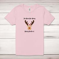 Horny Merry Christmas Adult T-Shirt\nA rude unisex adult t-shirt with "You Make Me Horny Merry Christmas" printed across the front of a 100% cotton* t-shirt. This rude t-shirt is great as a Christmas stocking filler.\nAll of our adult t-shirts are designed and hand-printed in the UK and are manufactured from quality 100% pre-shrunk jersey cotton knit for substantial softness and comfort. When quality, durability and substance count, this is the tee everyone can agree on. Featuring a crew neck, short sleeves, twin needle sleeve and bottom hems and unisex sizing. Available in sizes Extra Small to 5XL*.\n\n*Black & White tees available in sizes XS - 5XL, all other colours available XS - 2XL\n\nSize Guide\nUnisex adult t-shirts are measured around the chest, in inches\n\nXS 32/34"\nS 34/36"\nM 38/40"\nL 42/44"\nXL 46/48"\n2XL 50/52"\n3XL 54/56"\n4XL 58/60"5XL 62/64"\n\nSee more on our clothing size guide (opens in new tab)\n\n\nPlease Note\nAll of our adult t-shirts are hand-printed to order, as a result, colours may vary between prints - images are for illustration purposes only.\n