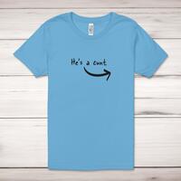 He's A Cunt Adult T-ShirtA rude unisex adult t-shirt with 'He's A Cunt' printed across the front of a 100% cotton* t-shirt. This rude t-shirt is great as a gift for any occasion.All of our unisex adult t-shirts are designed and hand-printed in the UK and are manufactured from 100% ringspun cotton for a premium quality feel and feature double-stitched waist hem and sleeves, seamless double-needle collar, taped neck and shoulders, and a tubular body that has been quarter turned to avoid a centre crease; available in sizes from Extra Small to 4XL*. *Black & White tees available in sizes XS - 4XL, all other colours available XS - 2XL Size GuideUnisex adult t-shirts are measured across the chest, in inchesXS 30/32'S 34/36'M 38/40'L 42/44'XL 46/48'2XL 50/52'3XL 54/56'4XL 58/60'See more on our clothing size guide (opens in new tab)Please NoteAll of our items are hand-printed to order, as a result, colours may vary between prints - images are for illustration purposes only.Show more products with the ... A Cunt design