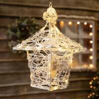 This lovely 35cm Acrylic hanging lantern by The Christmas Centre will brighten up your Christmas wherever you choose to hang it! 35cm tall with 40 warm white twinkling LED lights, this lantern will brighten up any Christmas scene. Complete with Timer which gives you 8 hours on and 16 hours off and now with Copper LED components to eliminate rust in the bulb holder. Height 35cm 40 warm white twinkling LEDs - Please note: not all bulbs twinkle. Suitable for indoor and outdoor use Battery powered