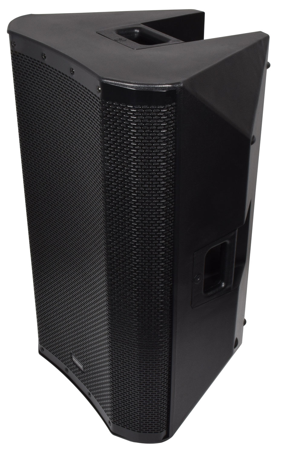 High Power Class-D Bi-Amplifier. Bluetooth Receiver. 5 Profile DSP Section. Concentric HF Driver. Available in 10"- 12" or 15"Power RMS: 250W (10")- 300W (12") & 350W (15") Power Max: 400W (10")- 600W (12") & 35W (15") Impedance: 4 Ohms Frequency Response: 65Hz - 20kHz (10")- 55Hz - 20kHz (12") & 45Hz - 20kHz (15") Sensitivity: 95dB (10")- 96dB (12") & 97Db (15") Dimensions: 355 x 350 x 275mm (10")- 445 x 410 x 335mm (12") & 528 x 504 x 382mm (15") Weight: 9.87Kg (10")- 12.1Kg (12") & 15Kg (15"). Active wedge speaker in a durable- texture coated wooden cabinet with minimal footprint. The main driver delivers punchy low frequencies with the help of 2 bass ports and a concentric titanium tweeter is mounted within the main driver for perfectly aligned- sparkling high frequencies. An arched powder-coated steel grille provides heavy duty protection from the rigours of stage performances and forms 2 side handle holes for easy portability. Powered from its inbuilt class-D amplifier- each wedge has enough output to deliver clear sound quality in high SPL situations and is even serviceable independently as a compact PA cabinet- thanks to the 35mm pole mount socket and M8 flying points. A DSP section provides 5 different EQ profiles to accurately match the program material and sound environment. In addition to a mic/line input and separate line input- the CM-series wedges also have a Bluetooth© receiver- which makes it ideal as a musician's practice amplifier. Surprisingly powerful in such a compact enclosure- this speaker offers high quality sound output with flexible options for stage foldback- keyboard and e-drum amplification.. active speaker-wedge speaker-powered speaker-pa speaker